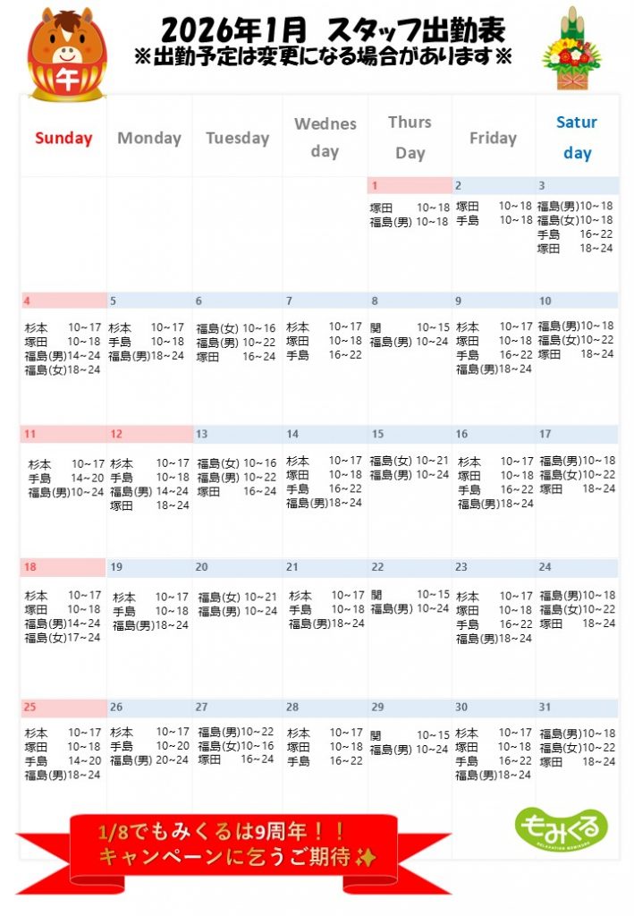 お済の方もそうでない方も、1年の疲れを落としにぜひもみくるにいらしてくださいね(^_-)-☆